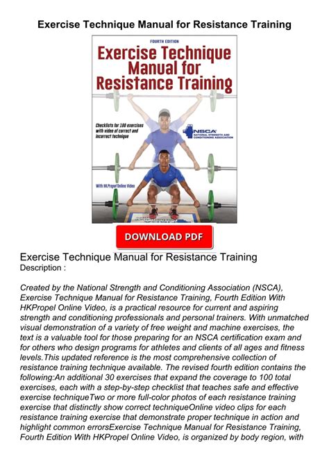 Free PDF PDF Exercise Technique Manual for Resistance Training 2nd rtf Google eBookstore